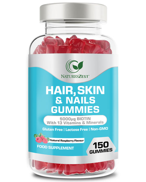 Hair, Skin & Nails Gummies with Biotin 5000µg – Natural Raspberry Flavour, 150 Vegan Gummies for Men & Women