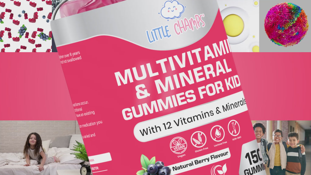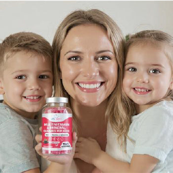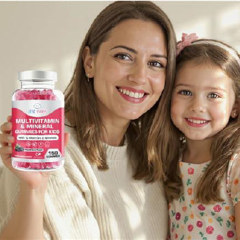 these natural berry-flavoured gummies are packed with 12 key nutrients, including Vitamins A, B, C, D, E, Biotin, Folic Acid, and Zinc to support immune health, energy, and overall growth.